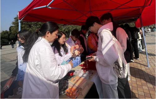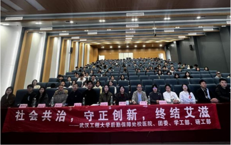 11月28日,校医院副院长刘婷副主任医师在武昌校区3601报告厅开展艾防主题健康教育讲座,校医院医务人员与学生志愿者在2栋宿舍楼前举办有奖问答、多病共防宣教活动。寓教于乐的宣教形式,让同学们将艾滋病防治知识牢记于心。
