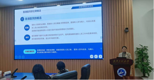 校医院负责人从医德医风建设核心意义、整体架构、调研分析、“医德十条”解读与落实四个方面作专题汇报,回顾了过去一段时期校医院在医德医风建设方面所采取的措施和取得的阶段性成效,也客观分析了存在的主要问题。